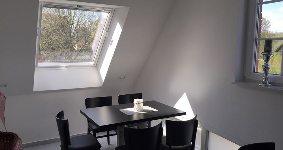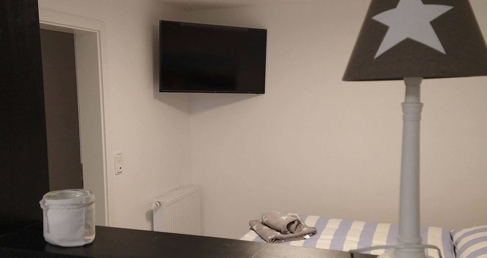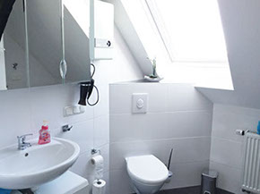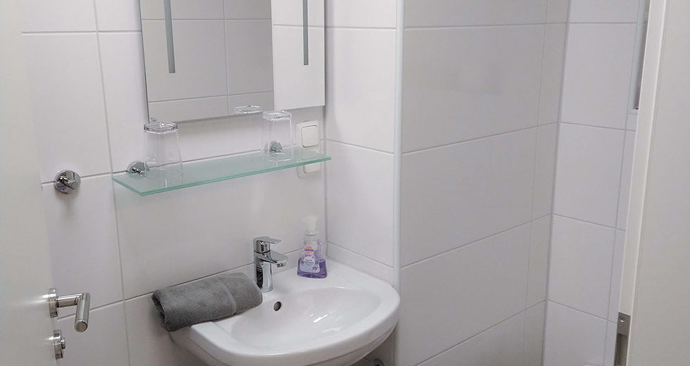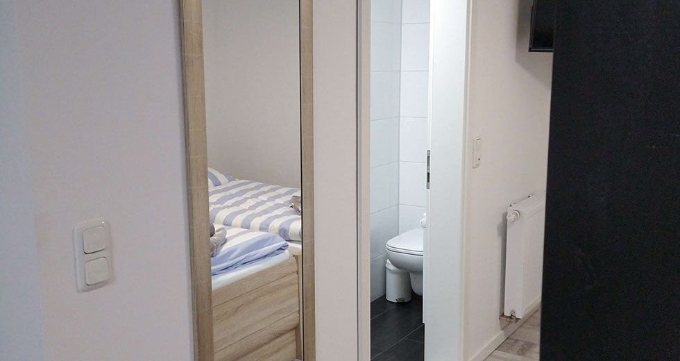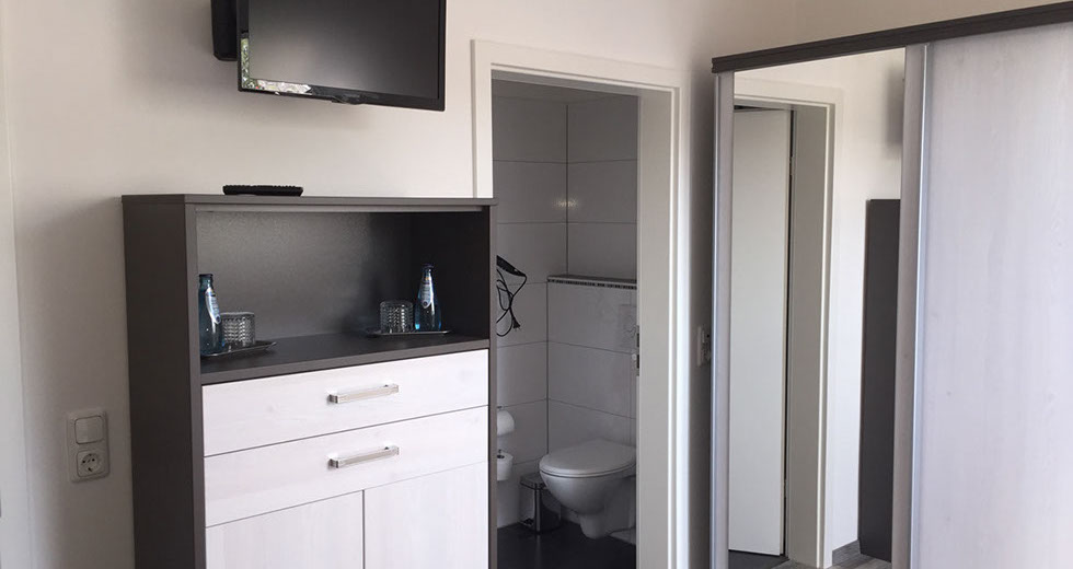 Jedes der Zimmer verfügt über ein eigenes Bad mit Dusche und WC. Zudem ein Doppelbett, TV und WLAN. Desweiteren steht Ihnen ein Aufenthaltsraum mit Küchenzeile (ohne Kochmöglichkeit) aber mit Mikrowelle, Toaster, Kaffeemaschine und Geschirr zur Verfügung.